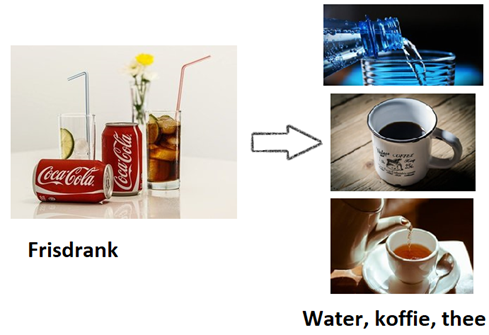 Vervang frisdrank voor bijvoorbeeld water, zwarte koffie of thee. Als je water niet lekker vind kun je er bijvoorbeeld verse citroen met munt aan toevoegen voor een verfrissende smaak. Voor een extra gezonde keuze kun je kiezen voor groene thee. Groene thee kent ontzettend veel gezondheidsvoordelen.