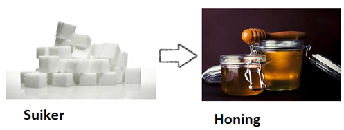 Honing is een vorm van suiker. Het bevat glucose en fructose. Er is weinig verschil met andere vormen van suiker, zoals kristalsuiker en rietsuiker. In je lichaam worden alle soorten suikers op dezelfde manier afgebroken en verteerd. Wel bevat honing iets meer water dan kristalsuiker. Er zit er per 100 gram iets minder calorieën in.