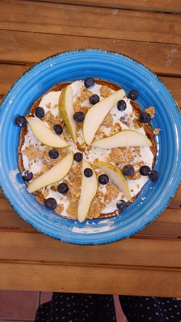 - Topping naar keuze kokosyoghurt/kwark/kefir/yohurt/frambozen, banaan, blauwe bessen, peer, appel, rozijnen, dadel, noten, cacao, pindakaas, cottage cheese, jam